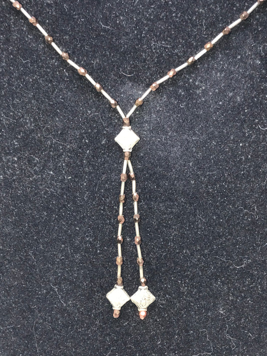 15" Bronze and Silver Beaded Bolo-Type Necklace