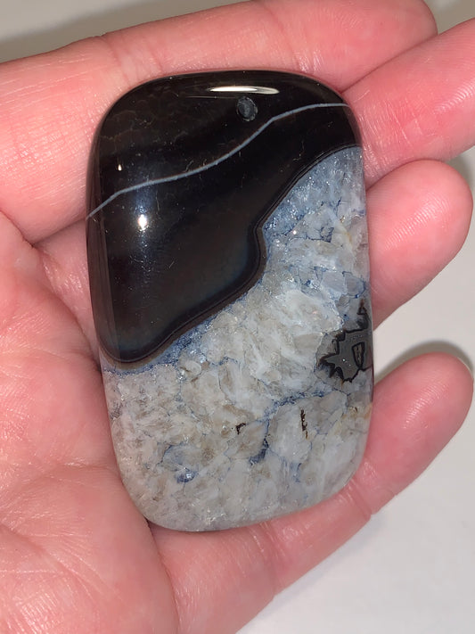 Blue and Black Smooth Druzy Quarts Rectangle Focal