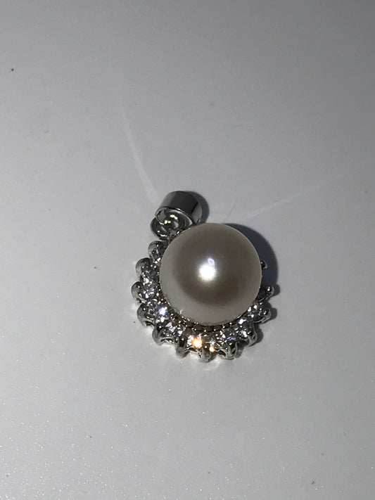 3/4" Silver Orange pearl and Cubic Zirconia Pendant