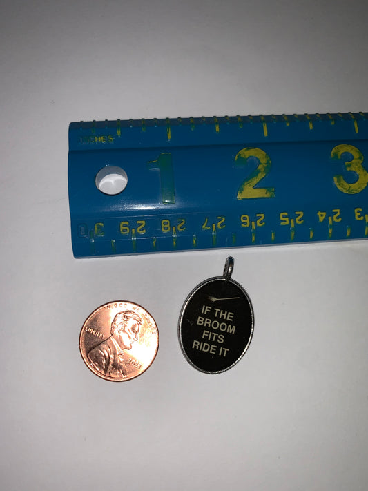 Oval "If The Broom Fits Ride It" Pewter Charm