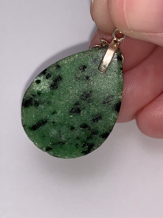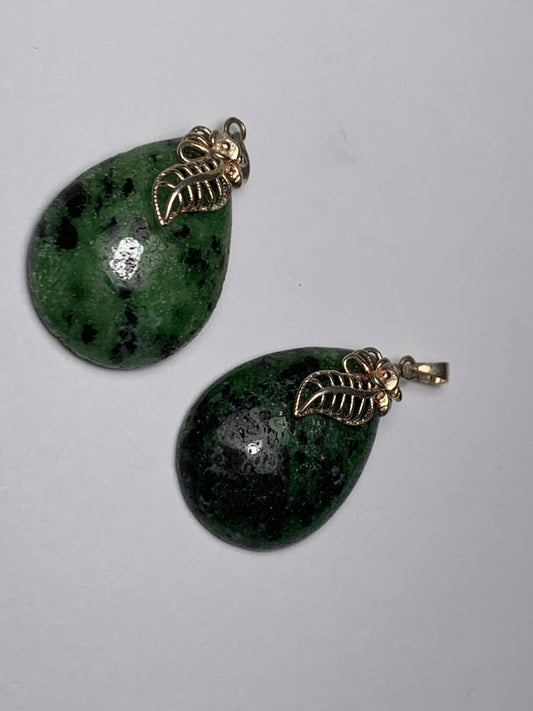 Ruby Zoisite Teardrop Pendant with Leaf Bail