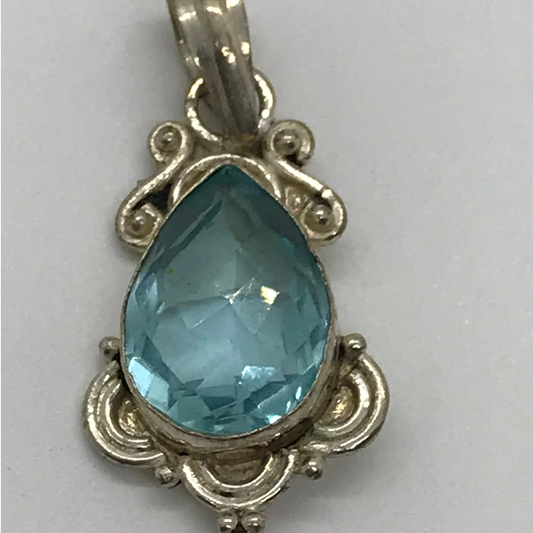 Sterling Silver Swiss Blue Topaz Teardrop Pendant