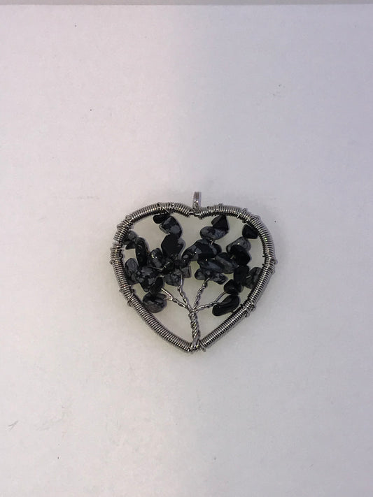 Snowflake Obsidian Tree Of Life Wirewrap Pendant