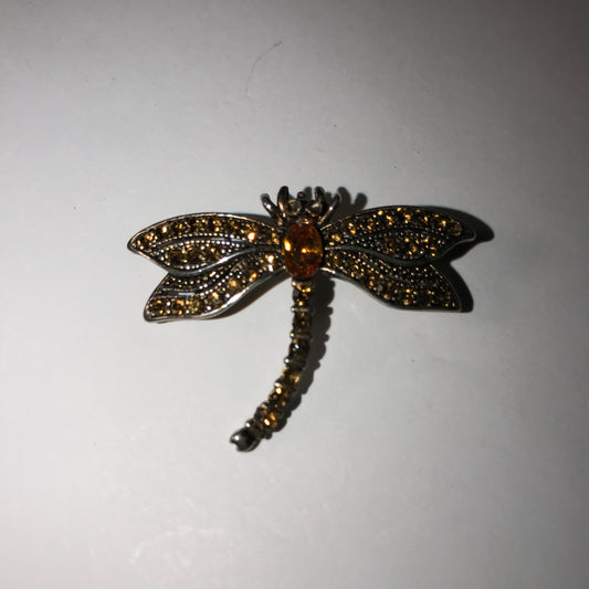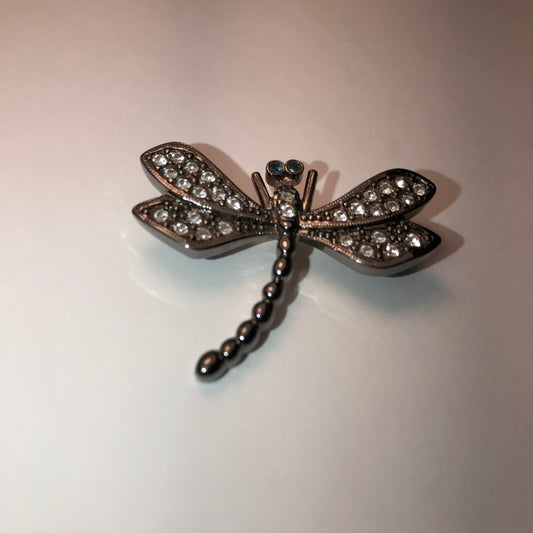 Pewter Rhinestone Dragonfly Pin, with Aqua Blue Eyes