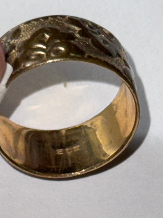 14 Kt Gp Wide Band Floral Ring, Size 6 1/2
