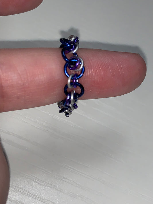 Blue, Purple and Silver chainmail ring, Size 5 1/2