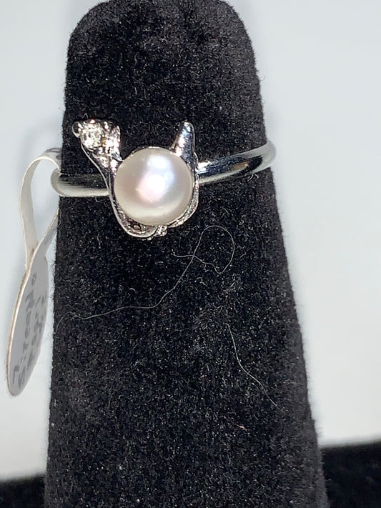 Faux Pearl and CZ SLP ring, size 7, Sizeable