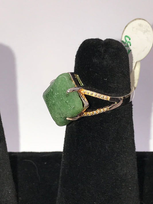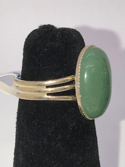 Silver Plated Green Aventurine Cab Ring, Sizeable