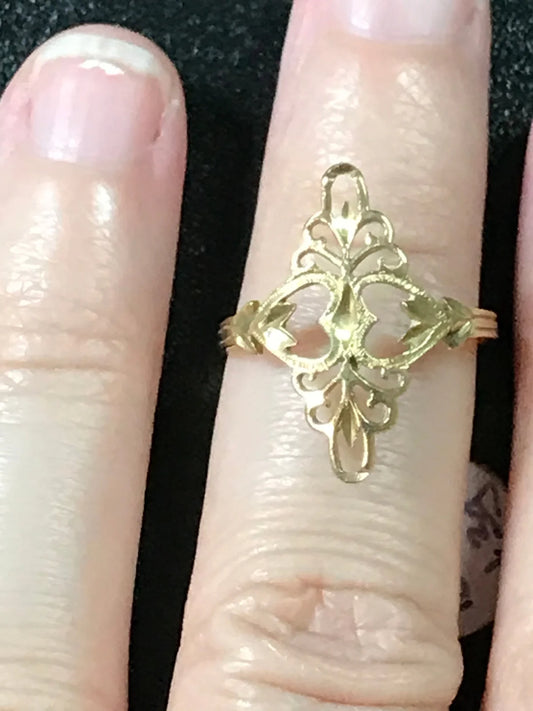 14 kt Gp Heart Design Ring, Size 4 3/4