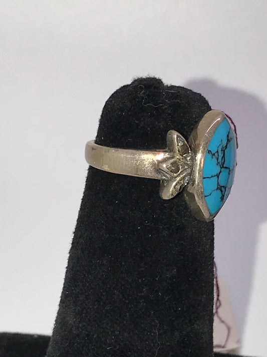 Marquis Turquoise and Sterling Silver Ring, Size 7