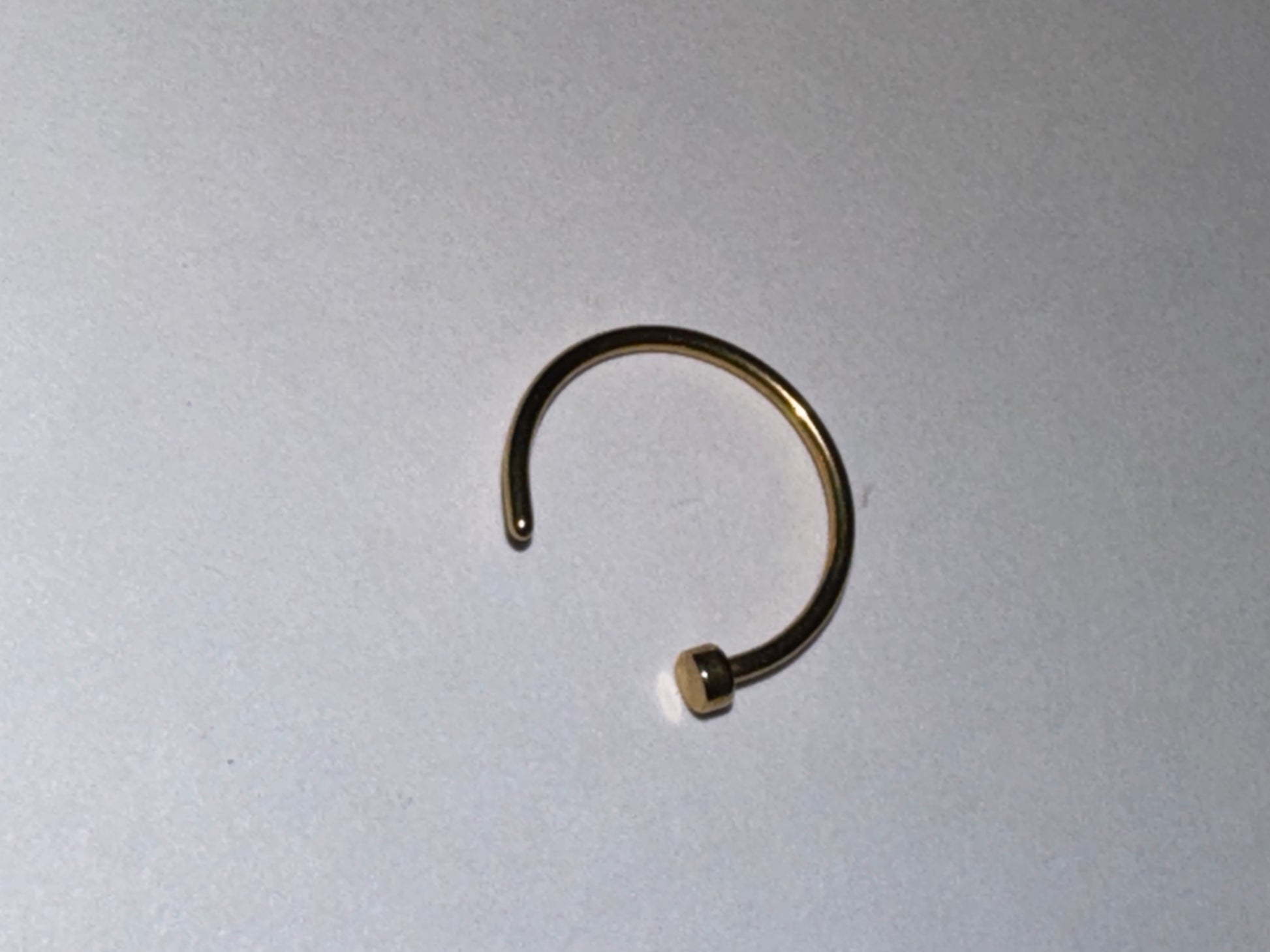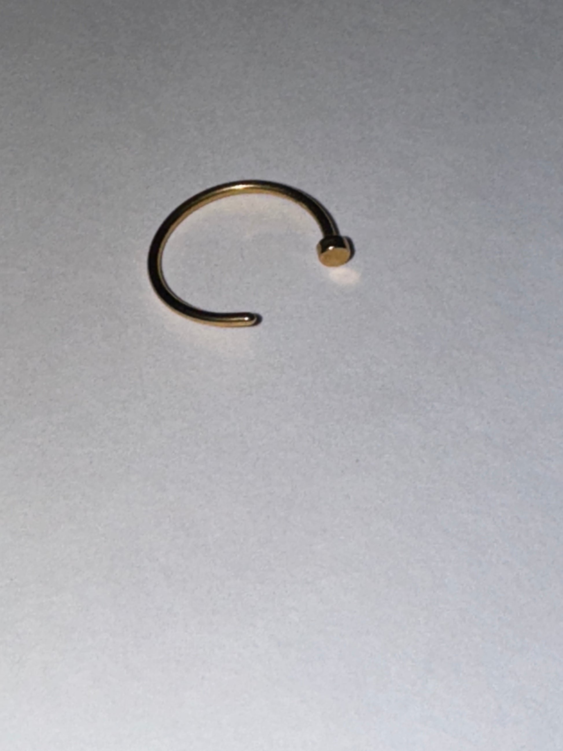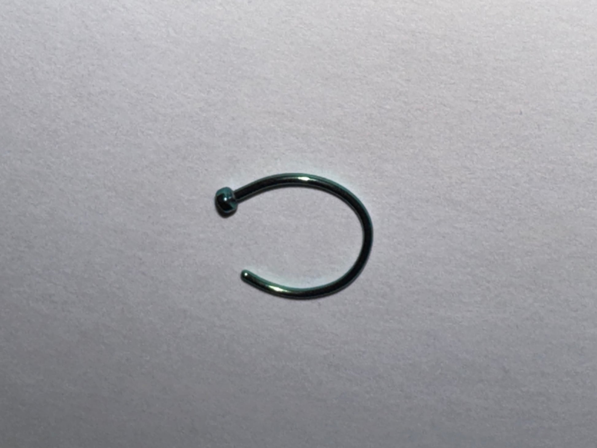 These are 20 gauge Hoop nose rings that are titanium plated. I have one black, one green, and several gold. I have two different sizes from a 5/16 gauge hoop and a 3/8 gauge hoop. The green and black are both 5/16 width. These are surgical steel under the plating.
