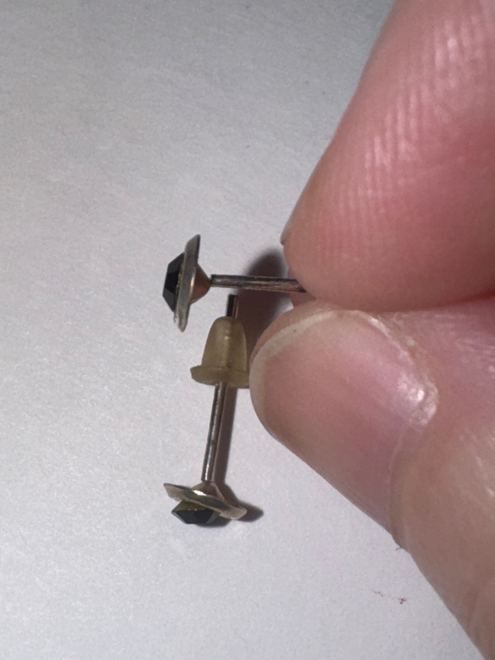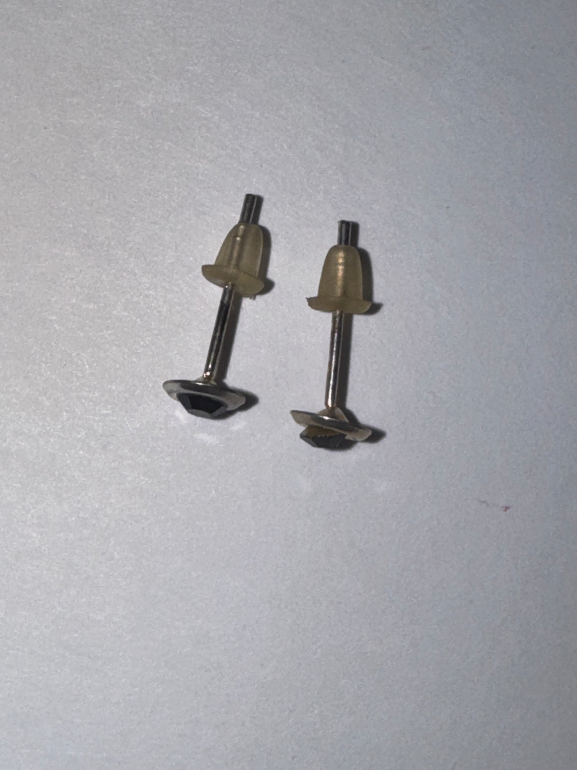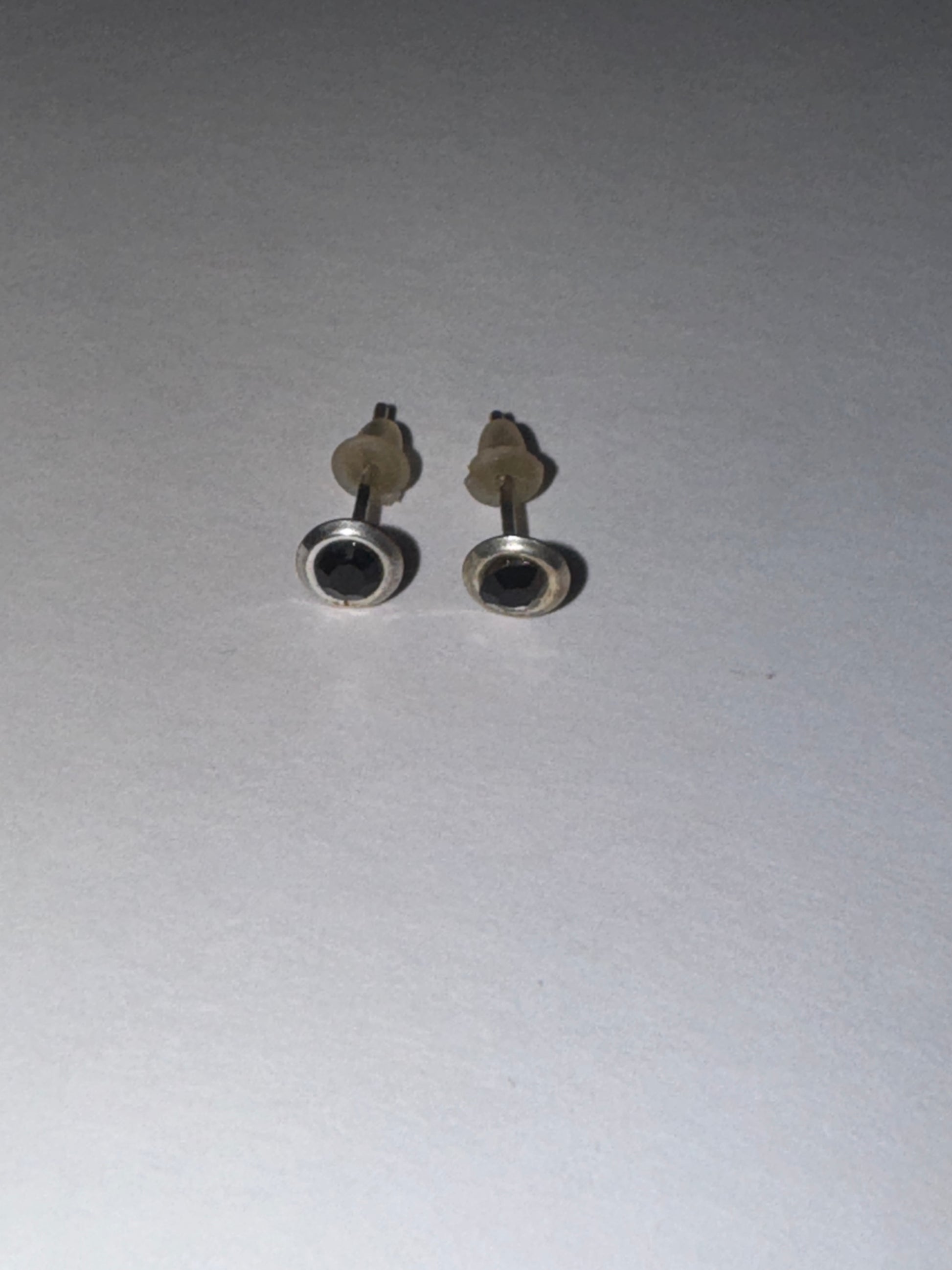 5 mm Round Cz and sterling silver post earrings. 5mm in size come with a silicone stoppers. The center Cz stone is actually 3mm. These will be shipped with an anti-tarnish paper in the baggie with the earrings so they don't tarnish as fast.