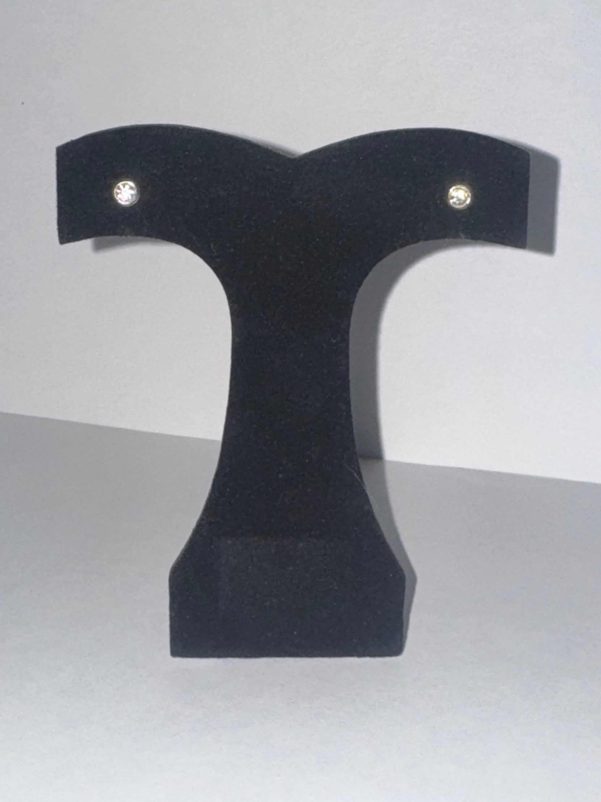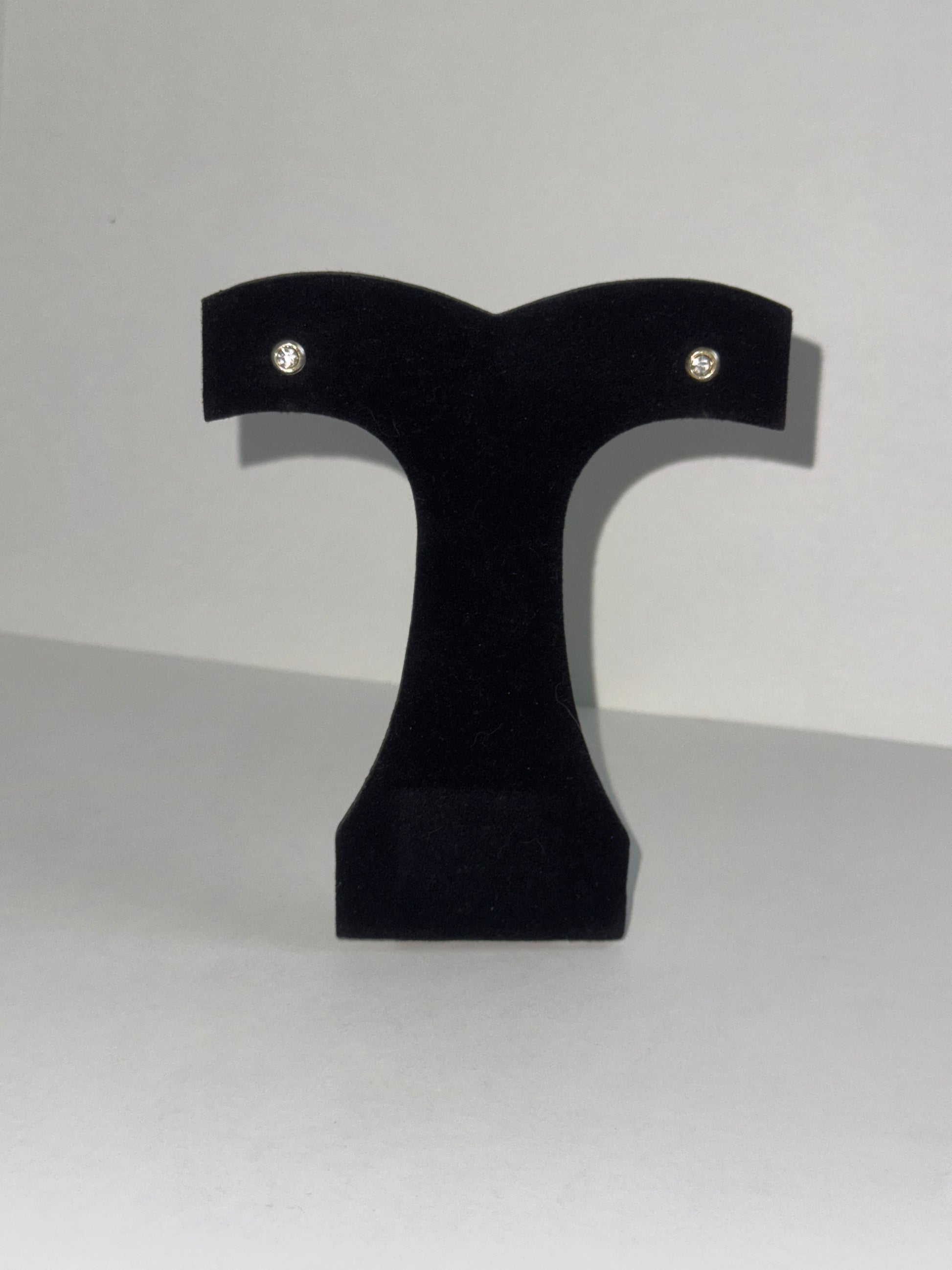 5 mm Round Cz and sterling silver post earrings. 5mm in size come with a silicone stoppers. The center Cz stone is actually 3mm. These will be shipped with an anti-tarnish paper in the baggie with the earrings so they don't tarnish as fast.
