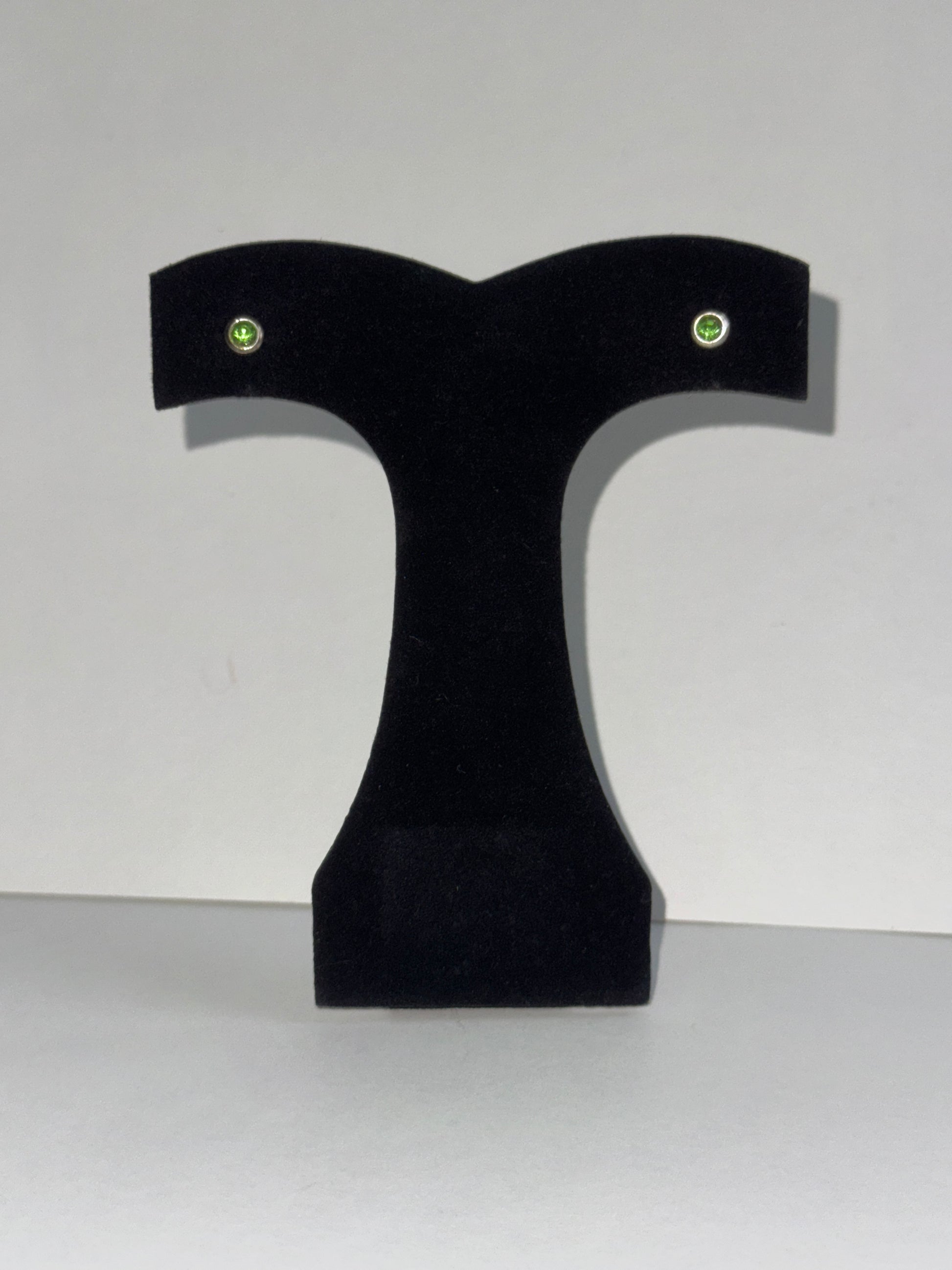 5 mm Round Cz and sterling silver post earrings. 5mm in size come with a silicone stoppers. The center Cz stone is actually 3mm. These will be shipped with an anti-tarnish paper in the baggie with the earrings so they don't tarnish as fast.