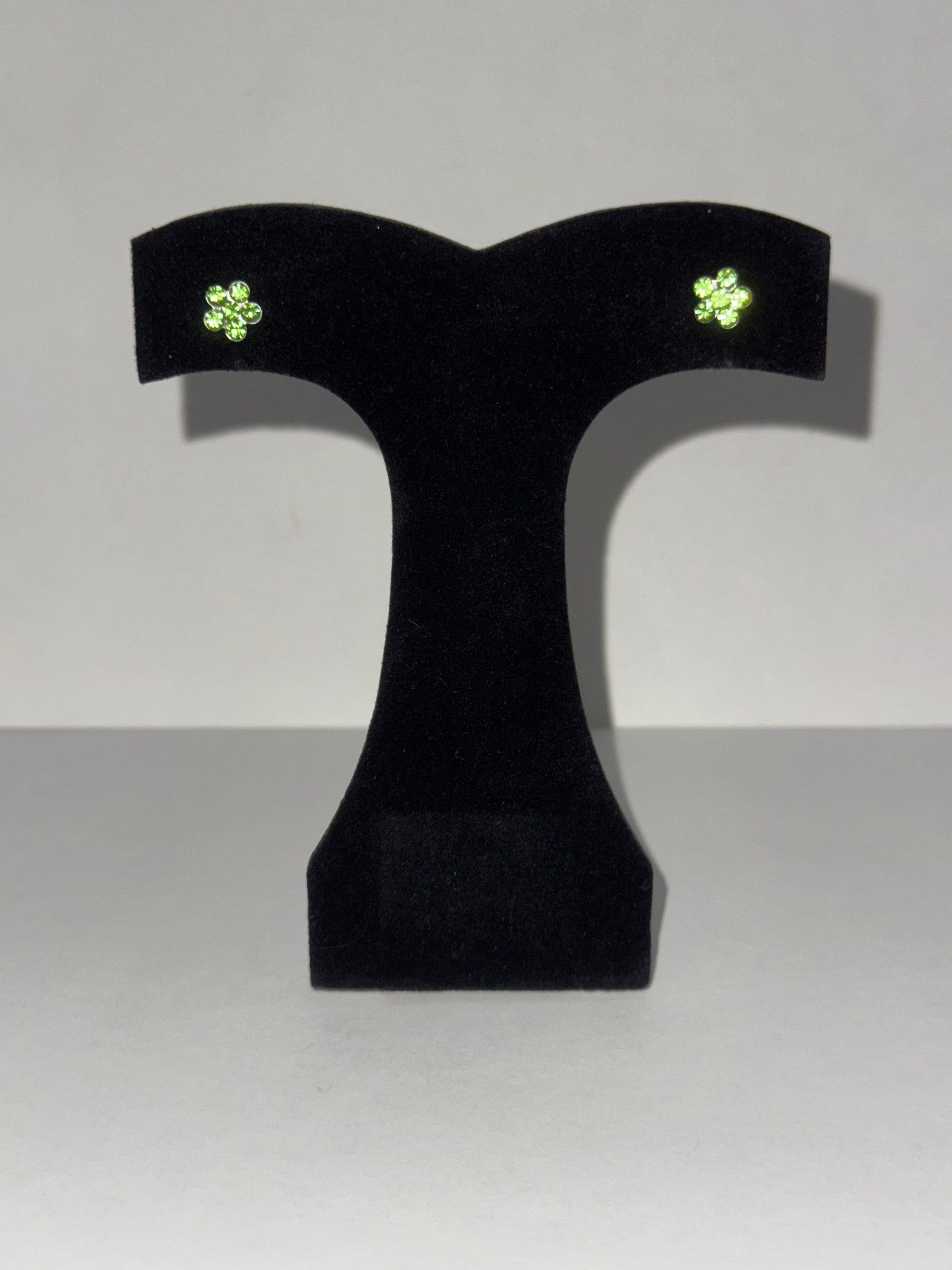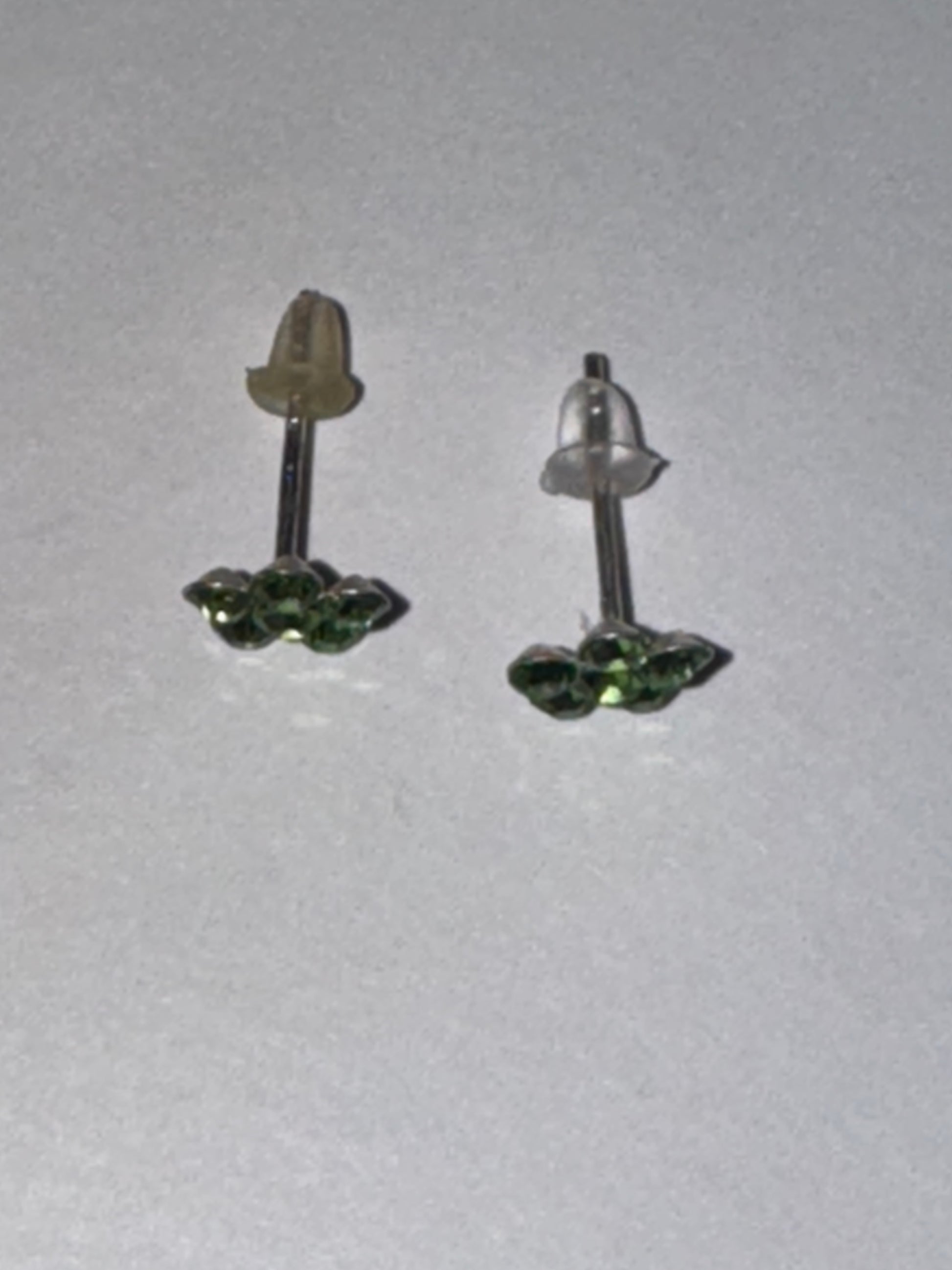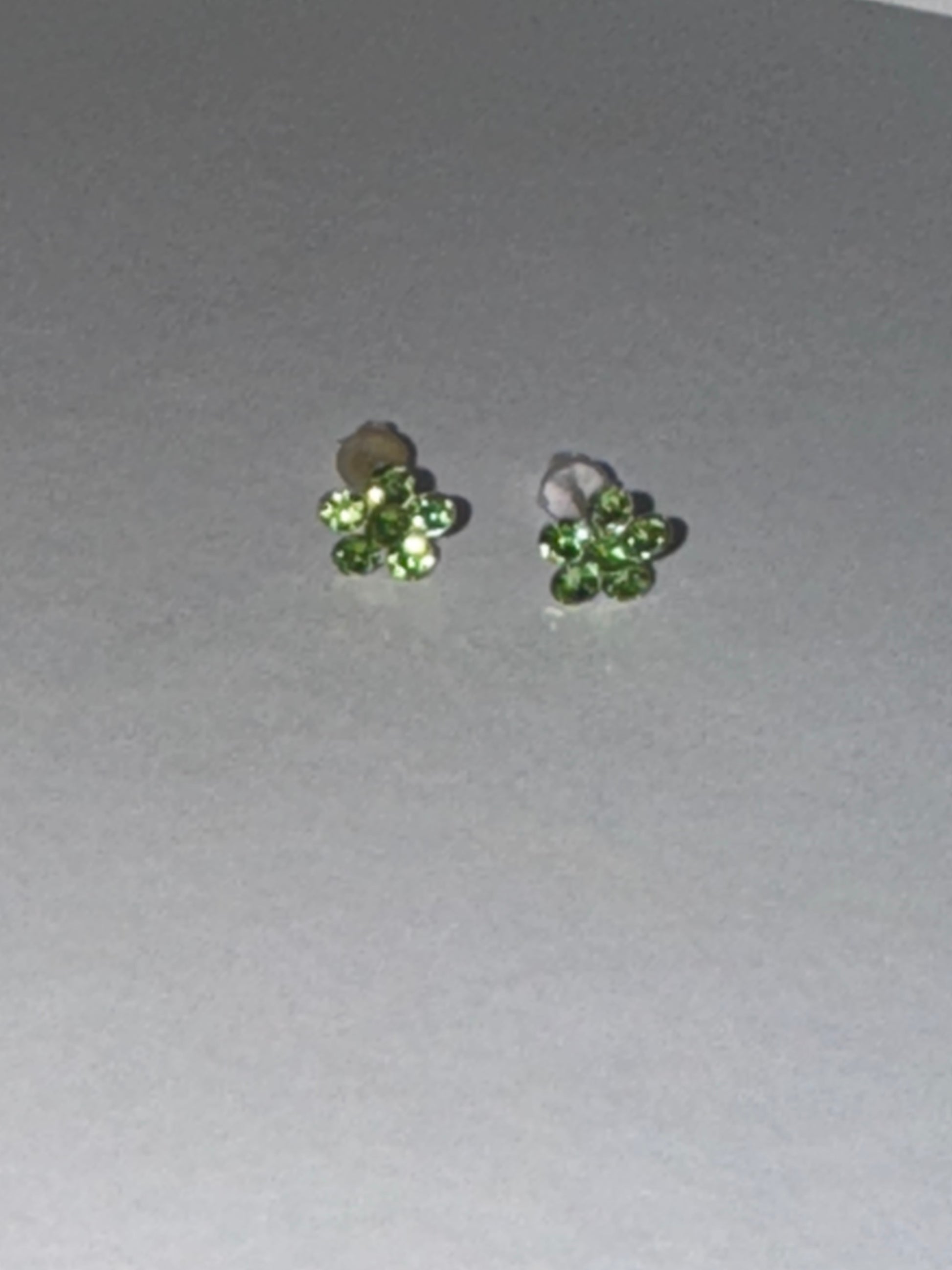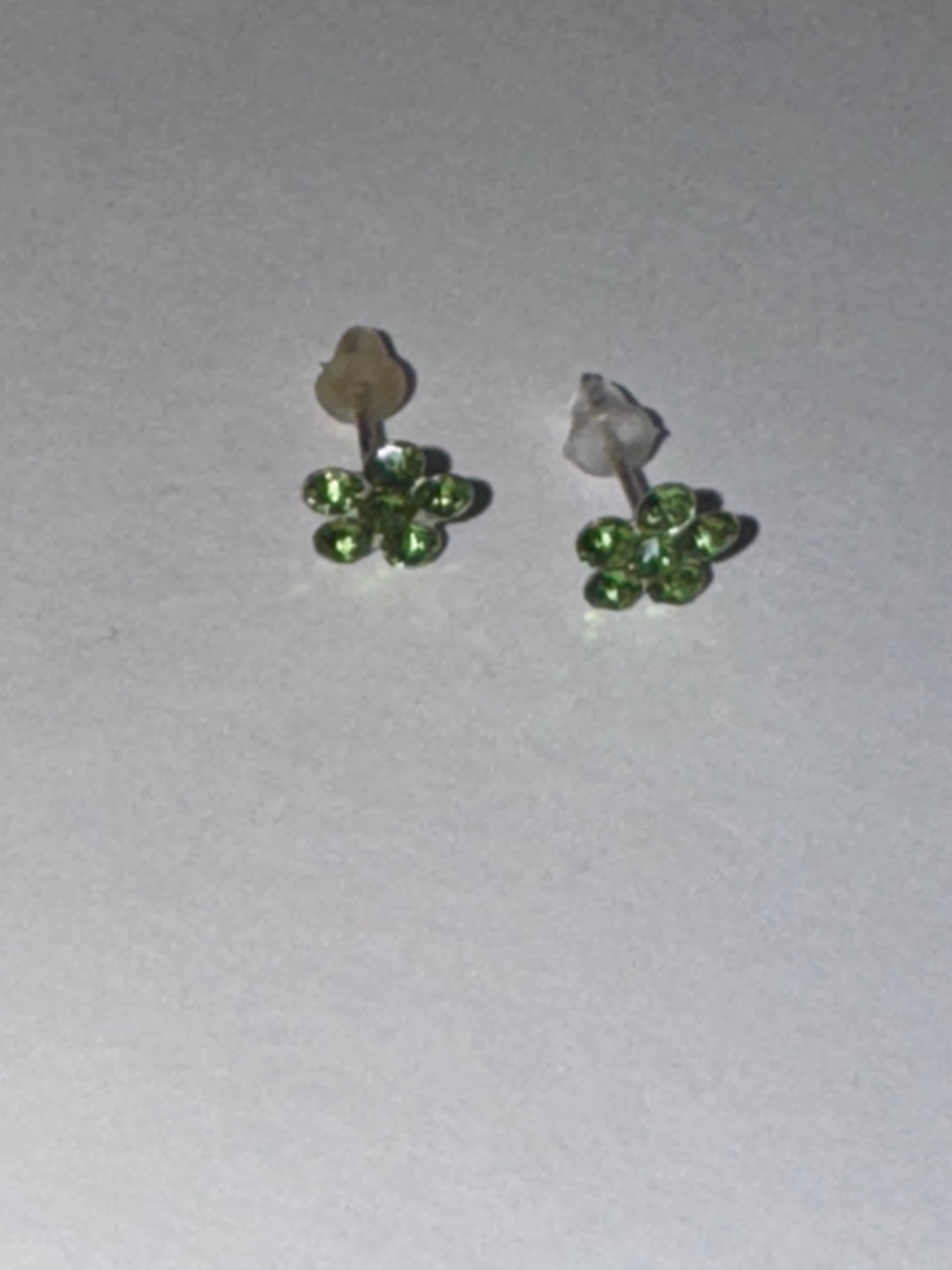 7mm Round Cz in the shape of a flower and sterling silver post earrings. 7mm in size come with a silicone stoppers. The center Cz stones are actually 2.5mm each. These have a total of 5 cz rhinestones that make the shape of a flower. These will be shipped with an anti-tarnish paper in the baggie with the earrings so they don't tarnish as fast.