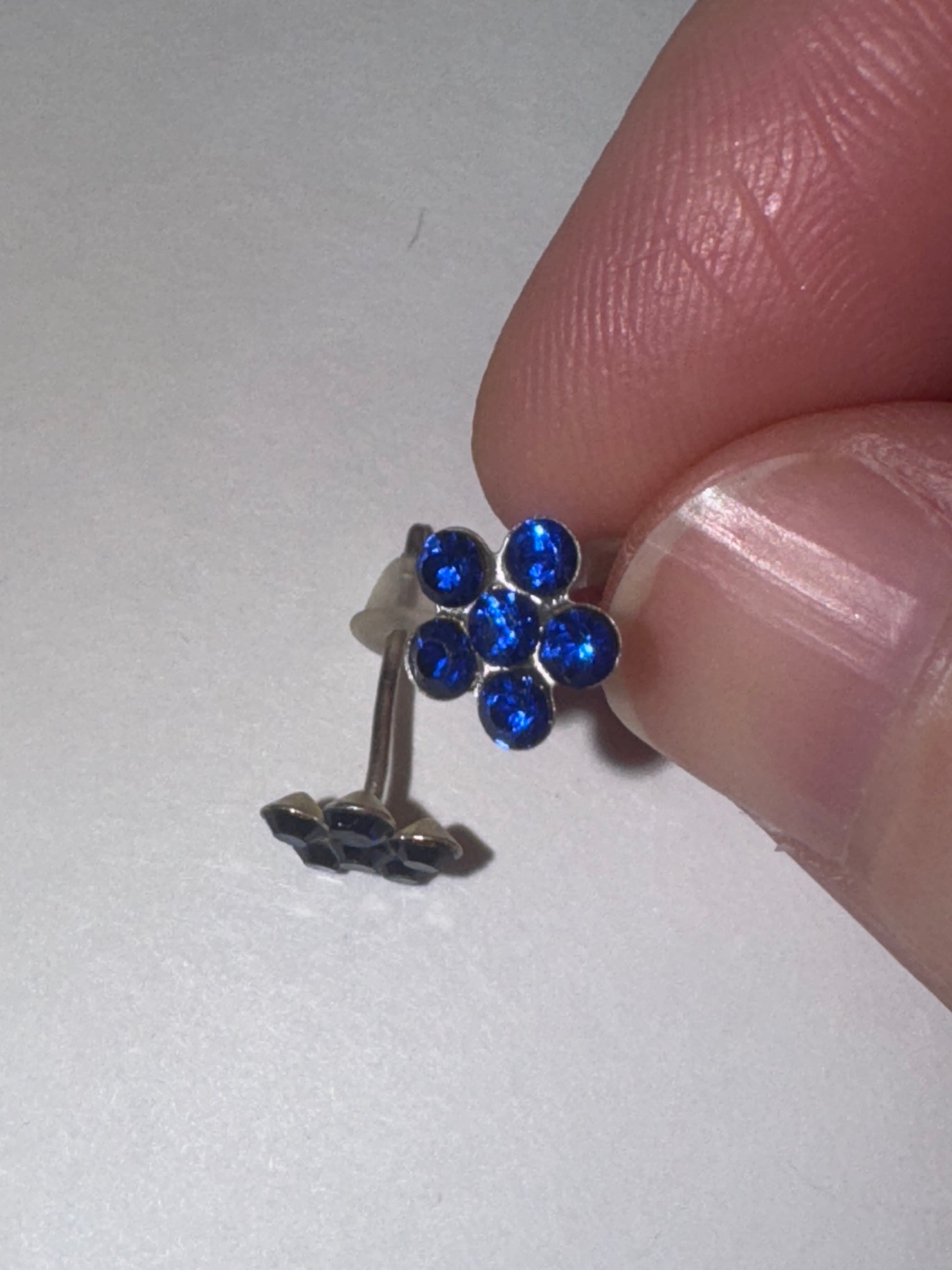 7mm Round Cz in the shape of a flower and sterling silver post earrings. 7mm in size come with a silicone stoppers. The center Cz stones are actually 2.5mm each. These have a total of 5 cz rhinestones that make the shape of a flower. These will be shipped with an anti-tarnish paper in the baggie with the earrings so they don't tarnish as fast.