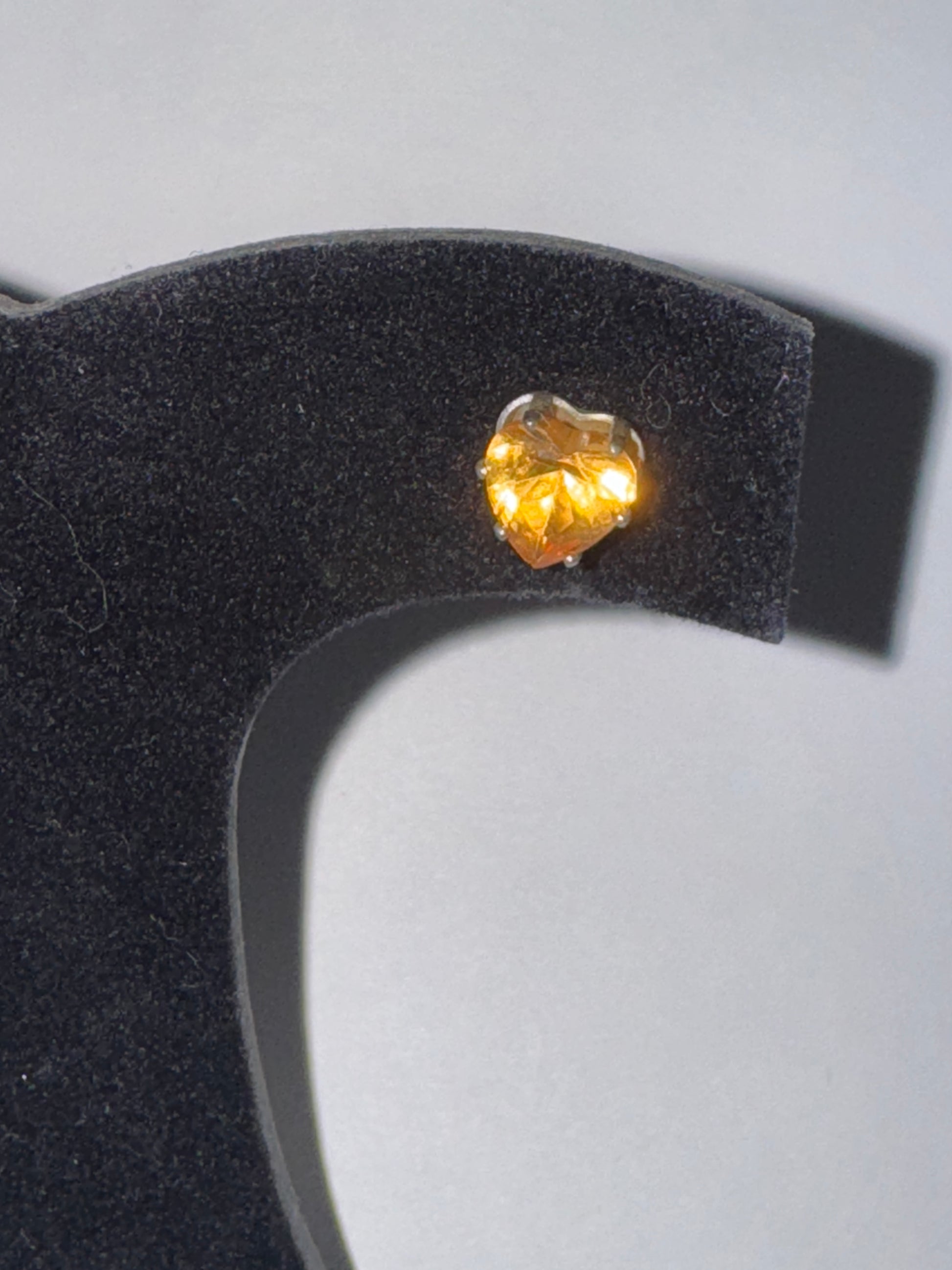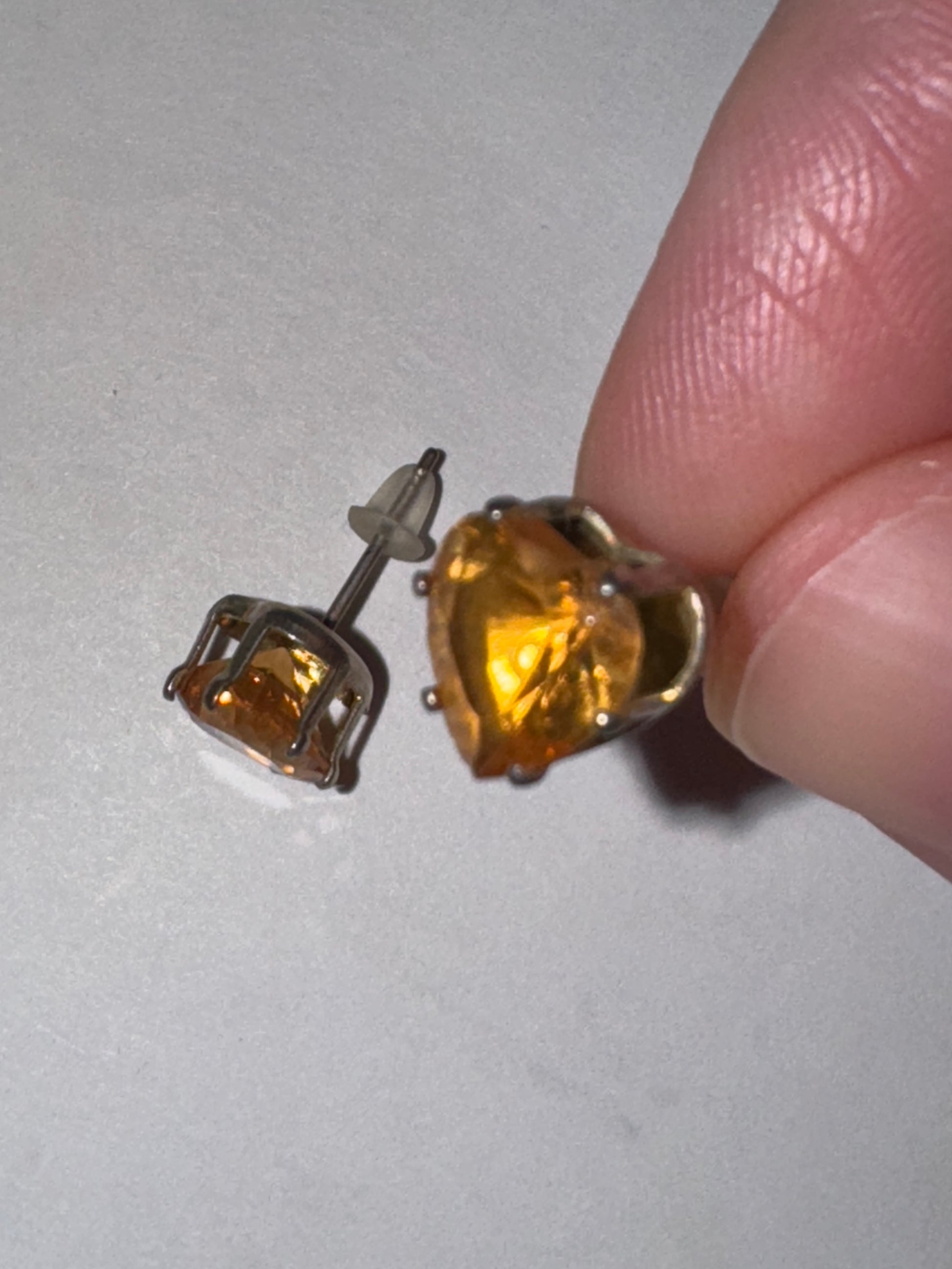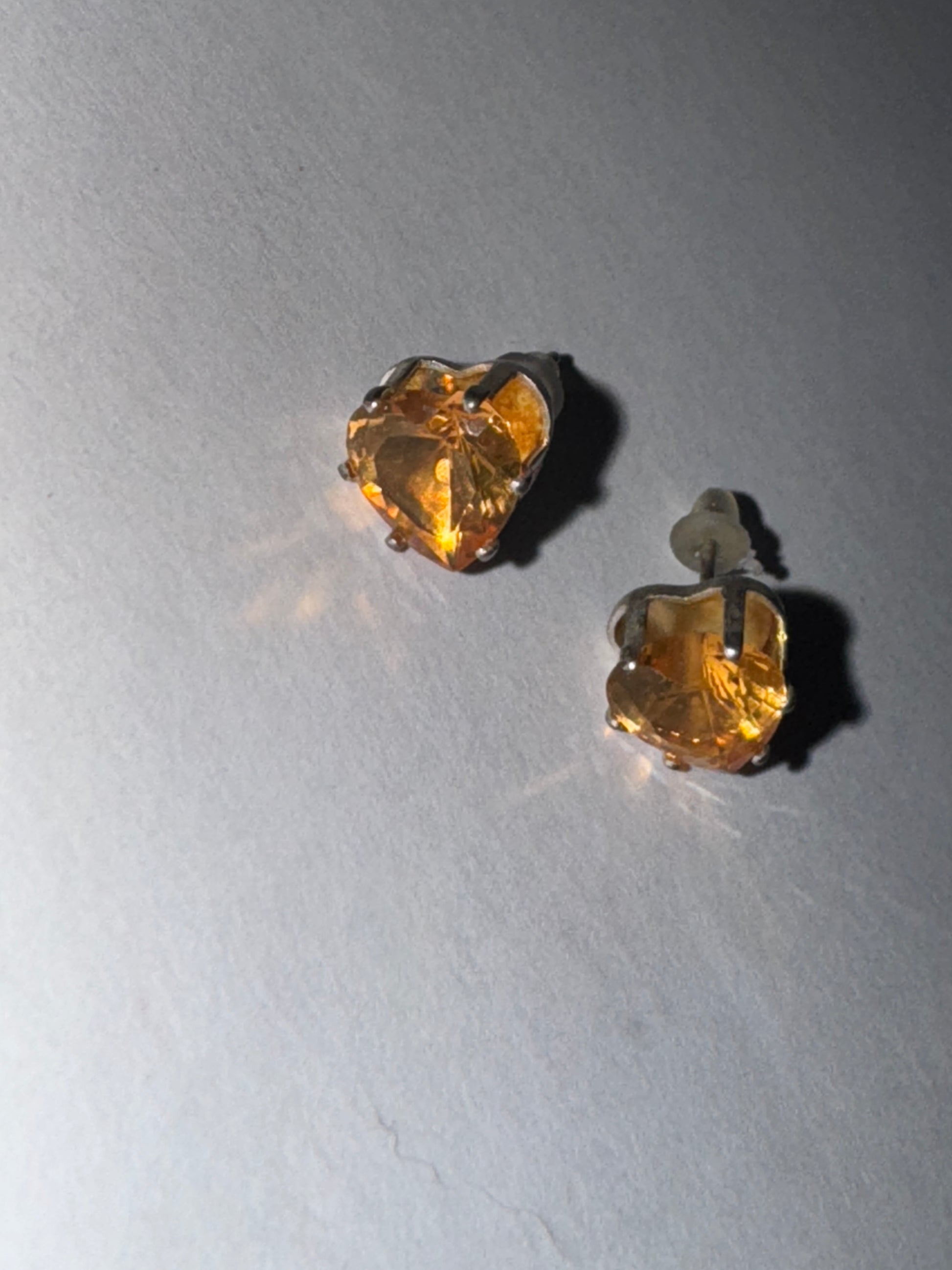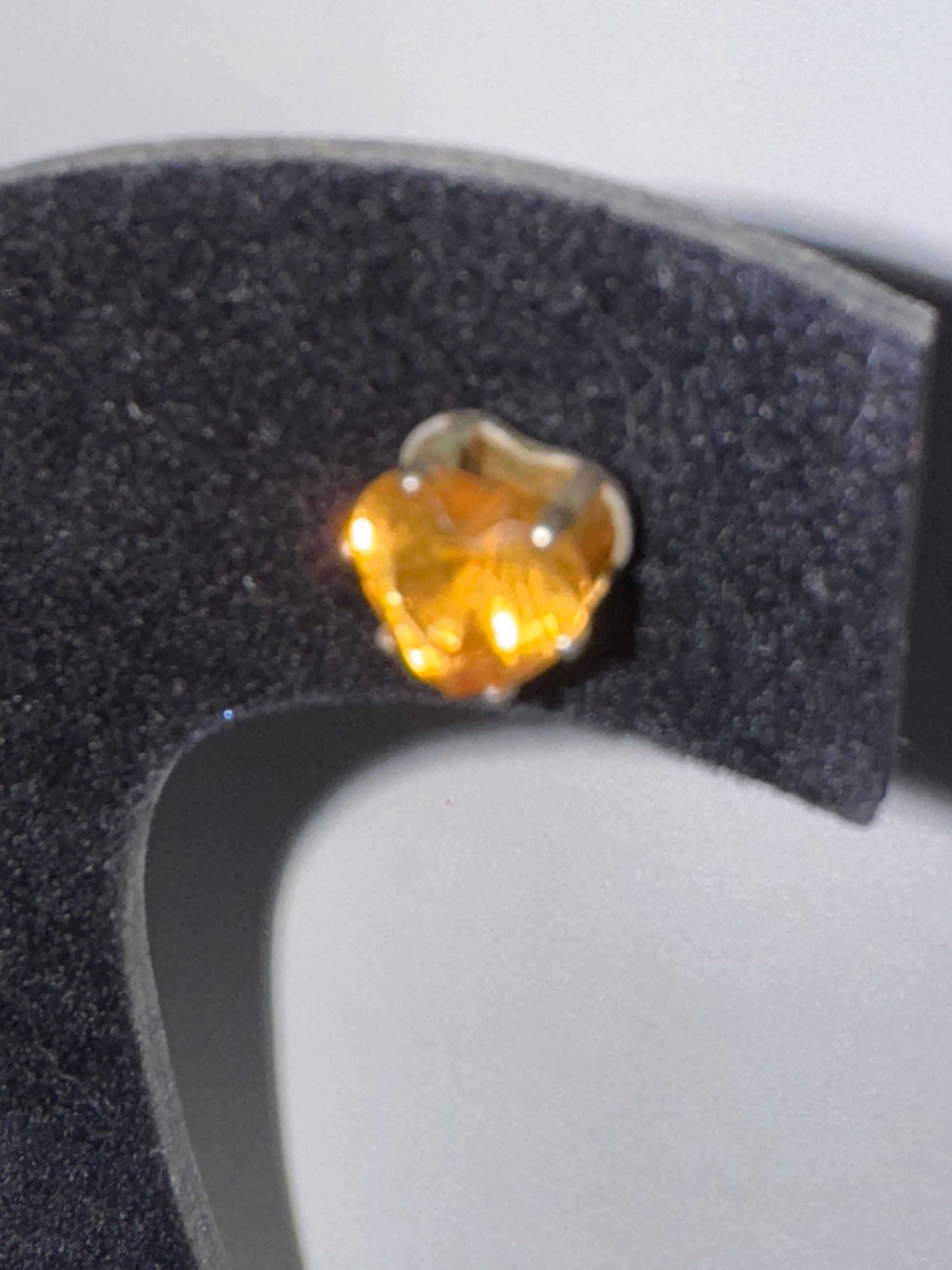 Solid sterling silver earrings shaped like a cute heart, with a heart rhinestone. 8.47mm Heart Clear Cz and sterling silver post earrings. 7.75mm in size come with a silicone stoppers. The center Cz stone is actually 7.75mm. These will be shipped with an anti-tarnish paper in the baggie with the earrings so they don't tarnish as fast.