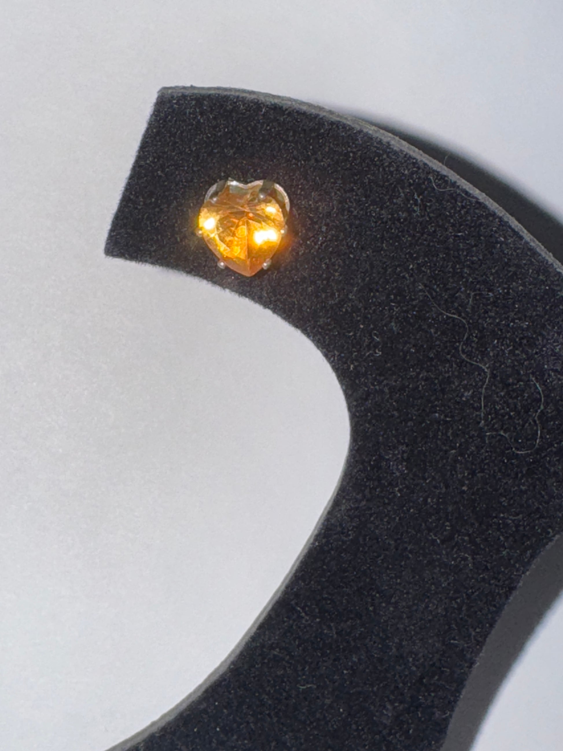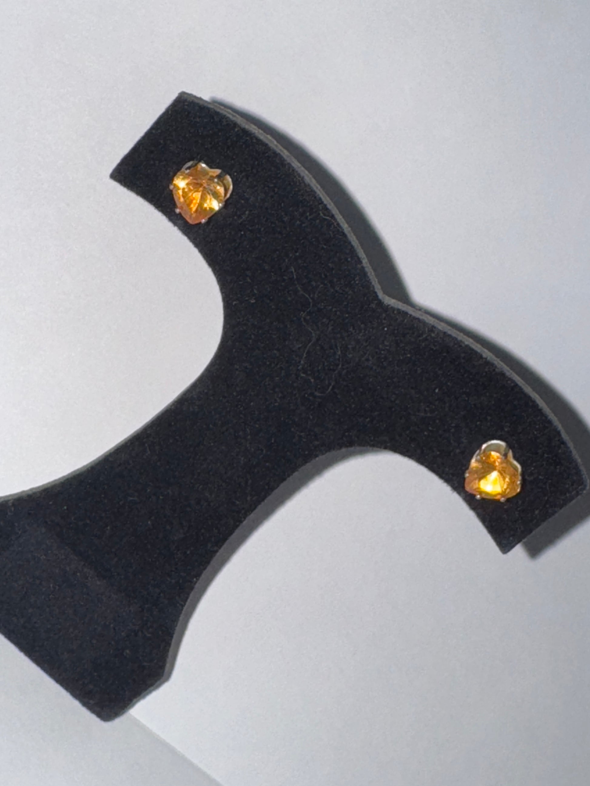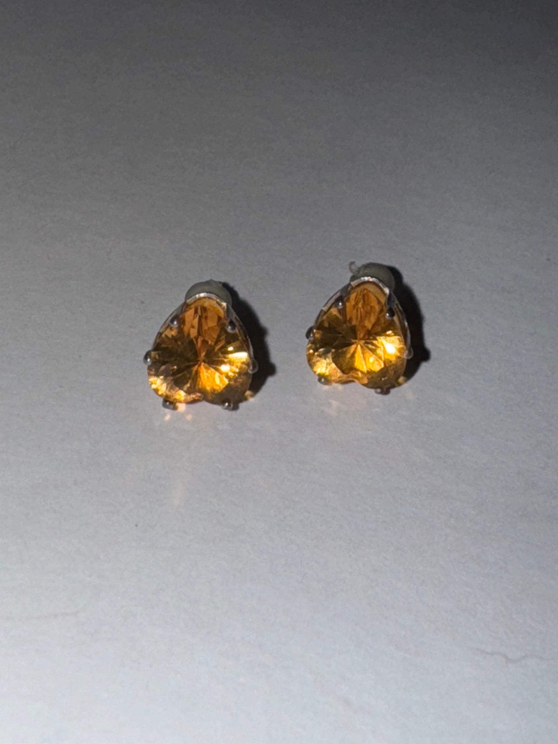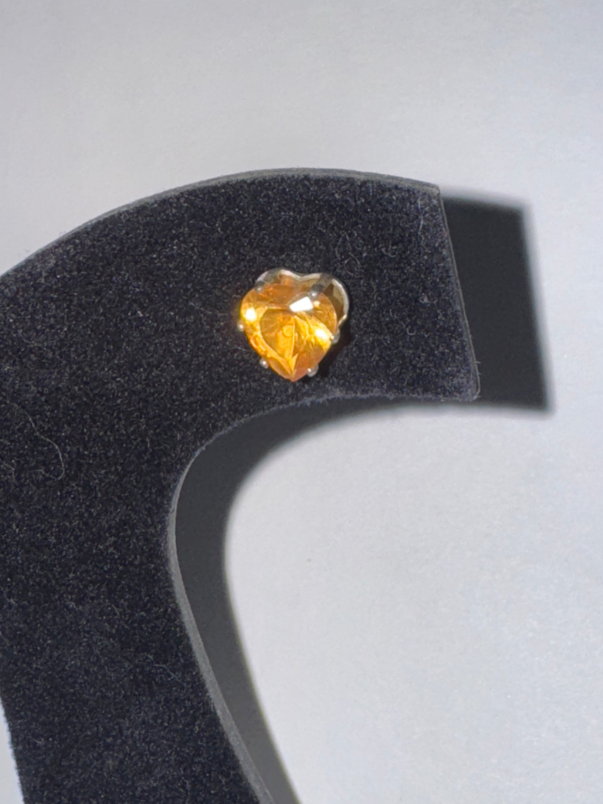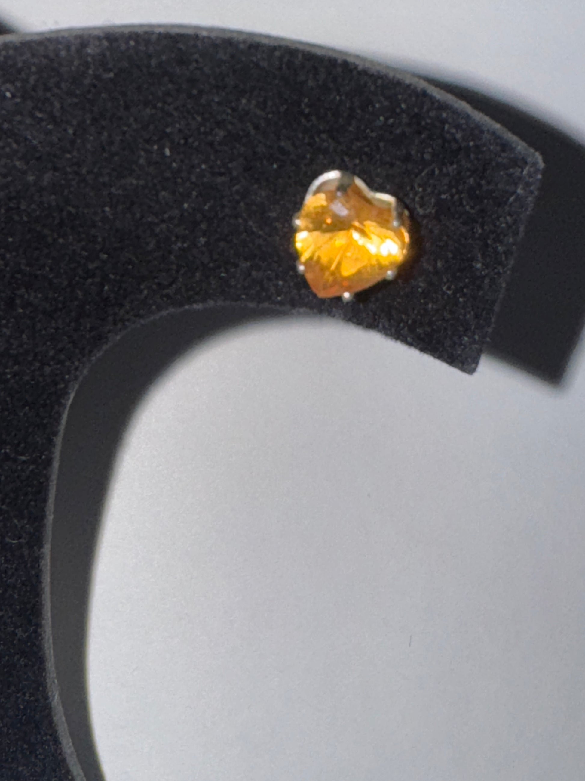 Solid sterling silver earrings shaped like a cute heart, with a heart rhinestone. 8.47mm Heart Clear Cz and sterling silver post earrings. 7.75mm in size come with a silicone stoppers. The center Cz stone is actually 7.75mm. These will be shipped with an anti-tarnish paper in the baggie with the earrings so they don't tarnish as fast.