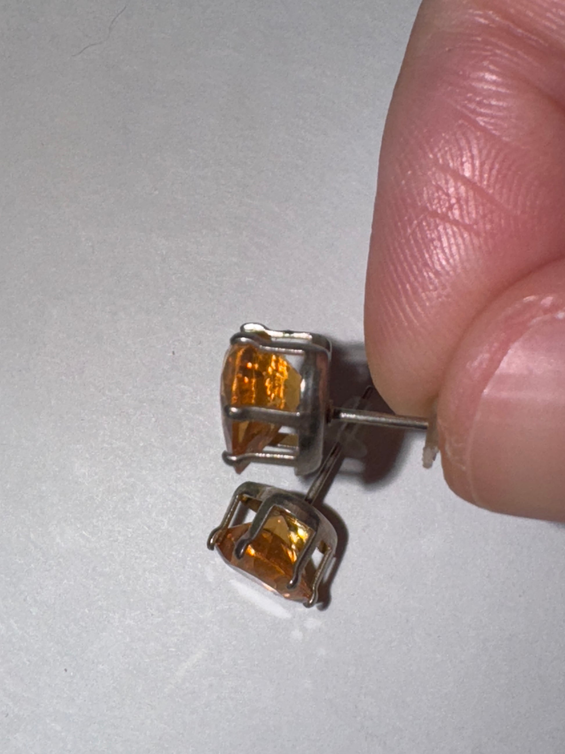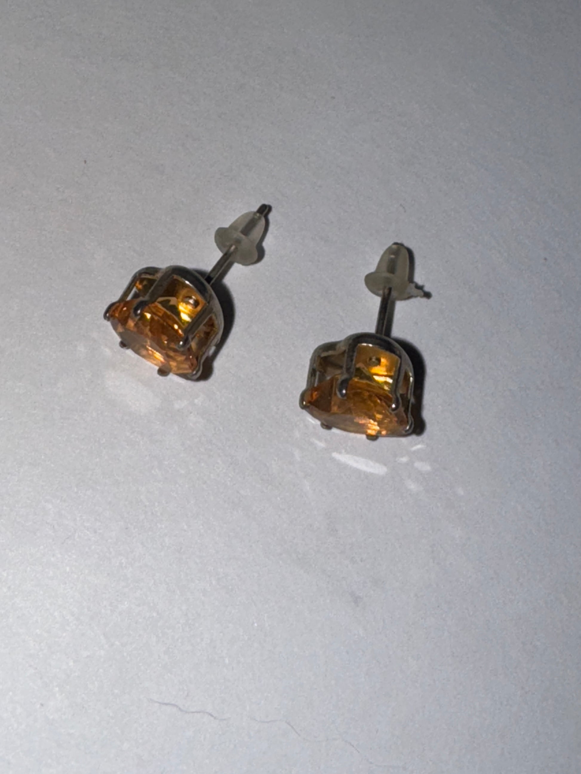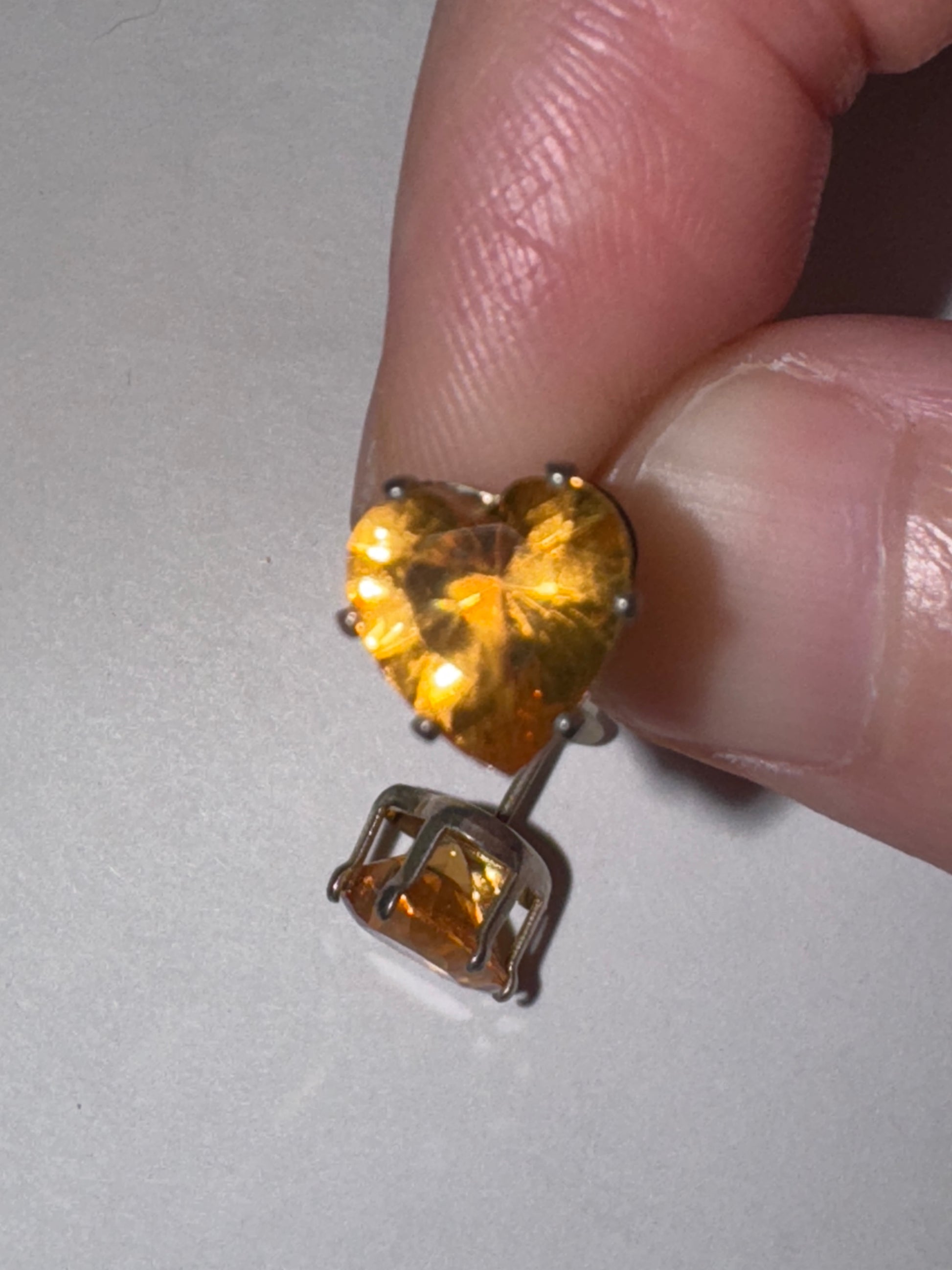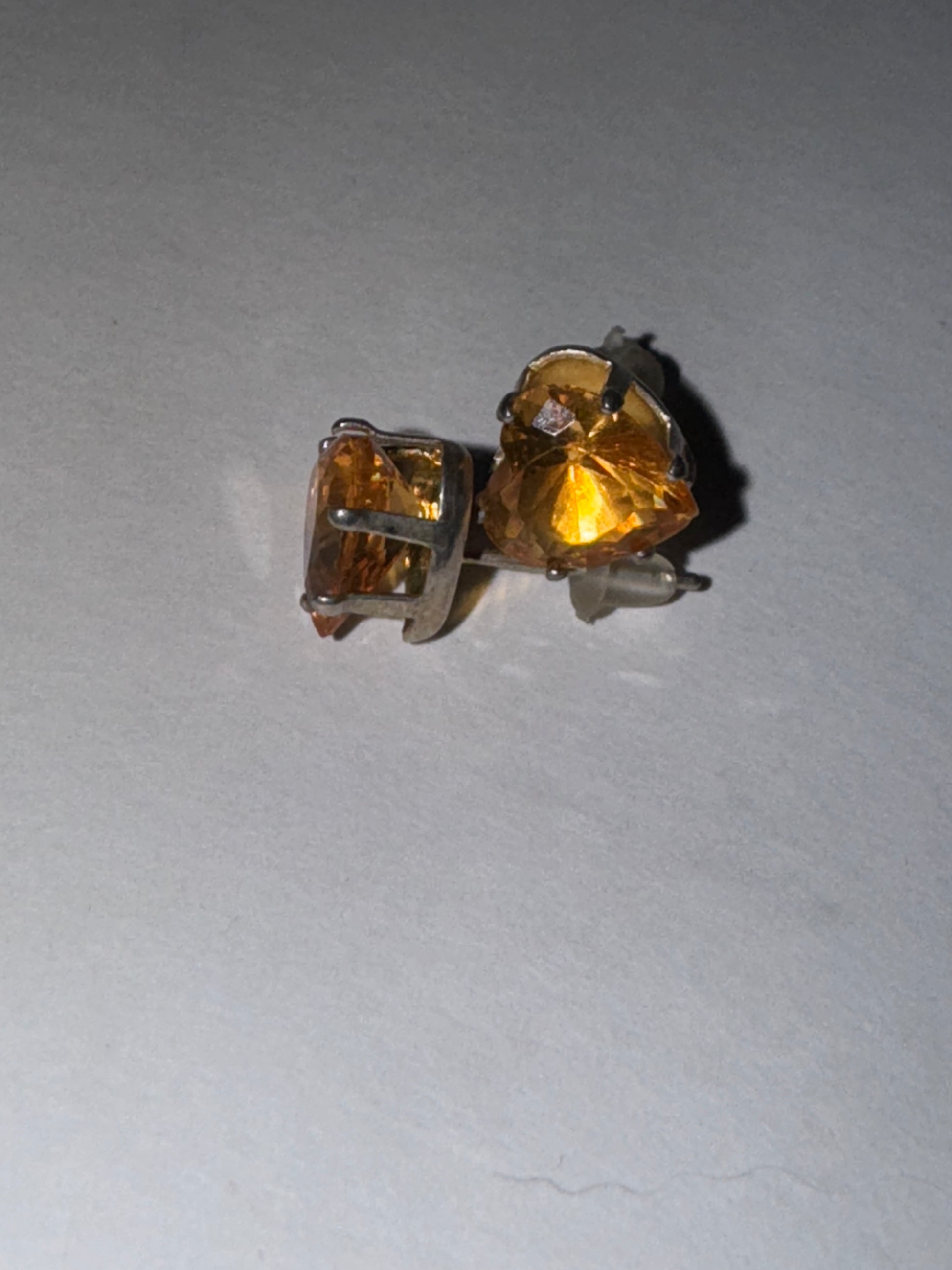 Solid sterling silver earrings shaped like a cute heart, with a heart rhinestone. 8.47mm Heart Clear Cz and sterling silver post earrings. 7.75mm in size come with a silicone stoppers. The center Cz stone is actually 7.75mm. These will be shipped with an anti-tarnish paper in the baggie with the earrings so they don't tarnish as fast.
