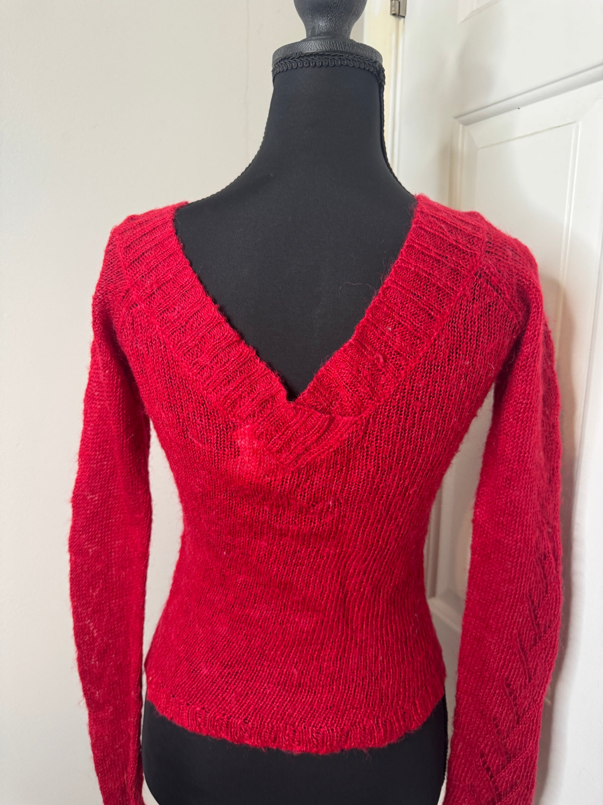 Red Deep V Neck Sweater by One Step Up, Size Medium