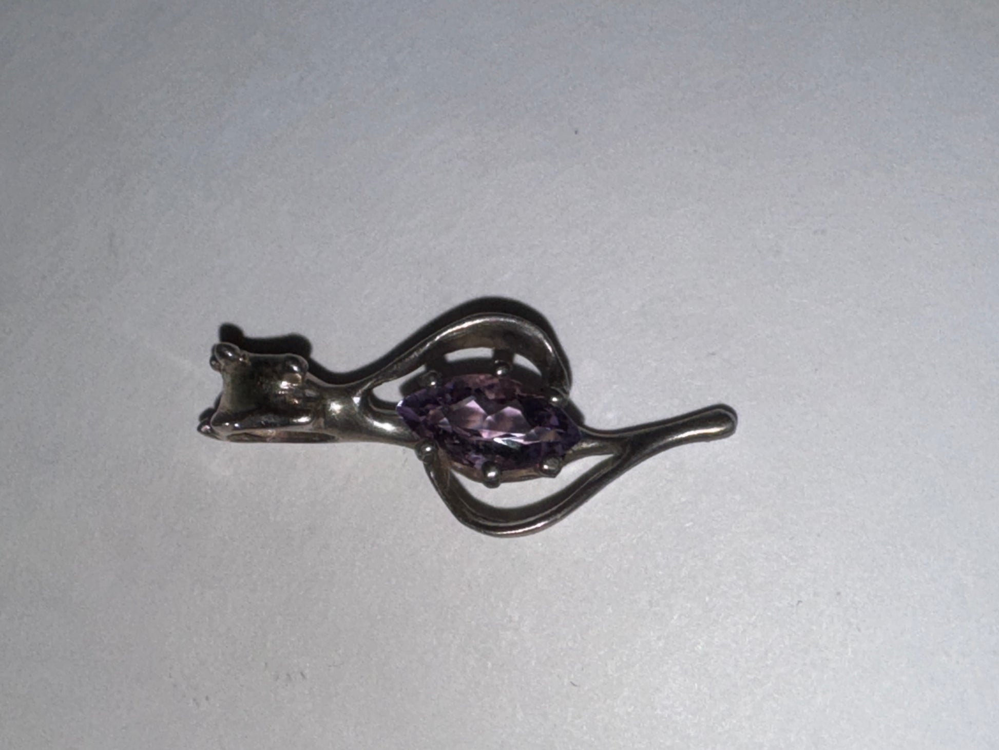 This was made using a natural amethyst Marquis cut measuring 6.40 by 11.62 and the silver was made using the lost wax casting method.
