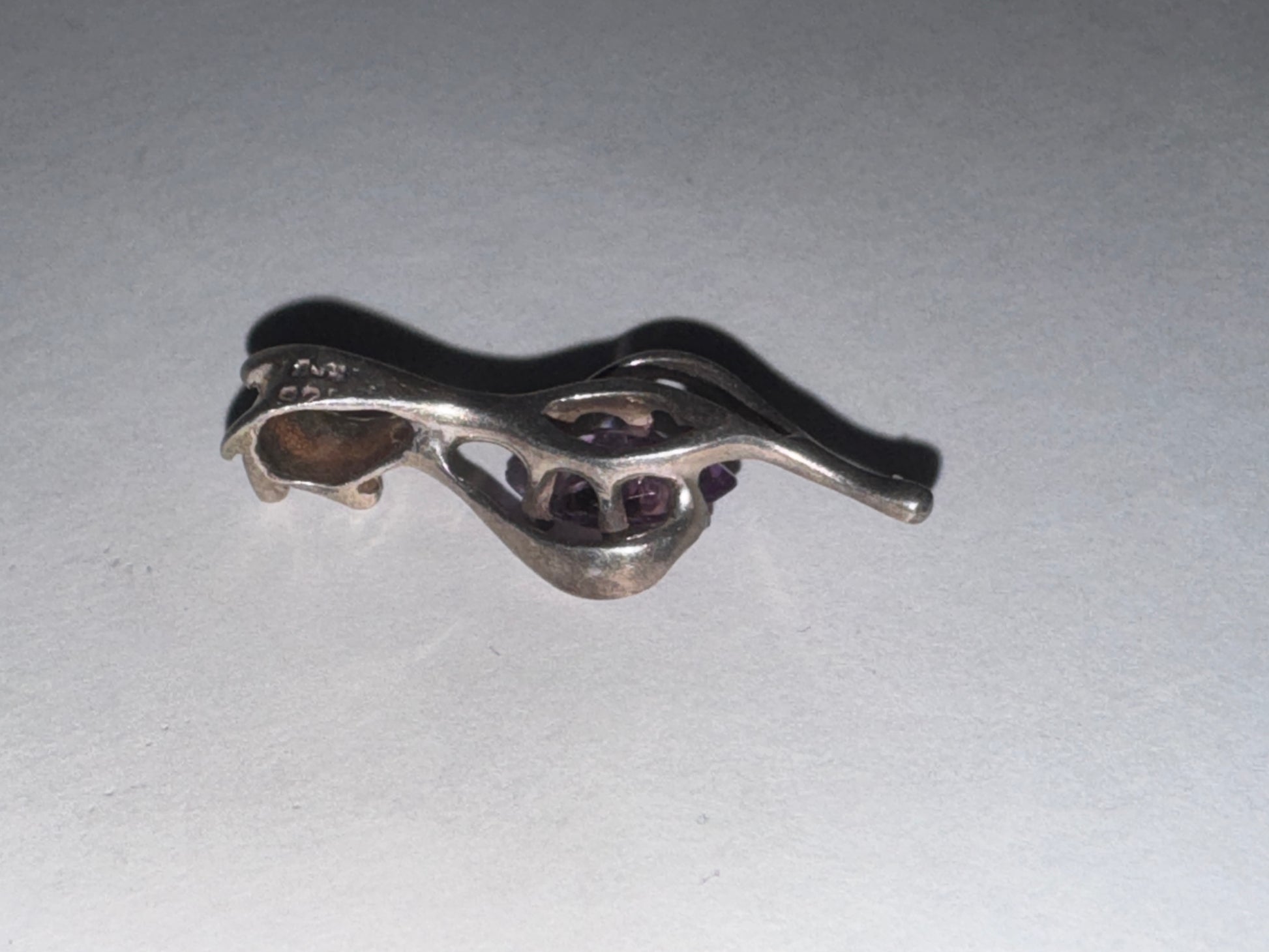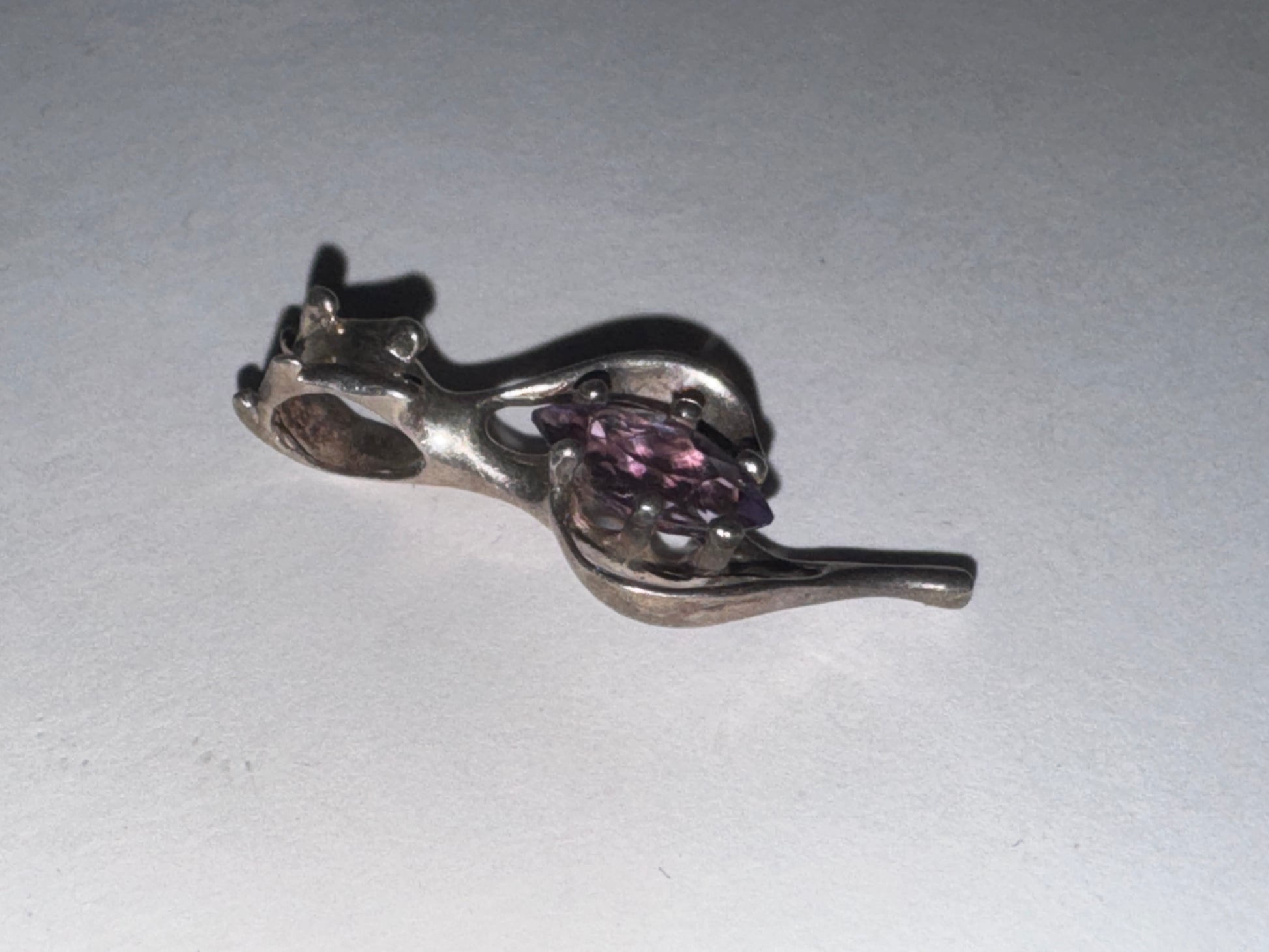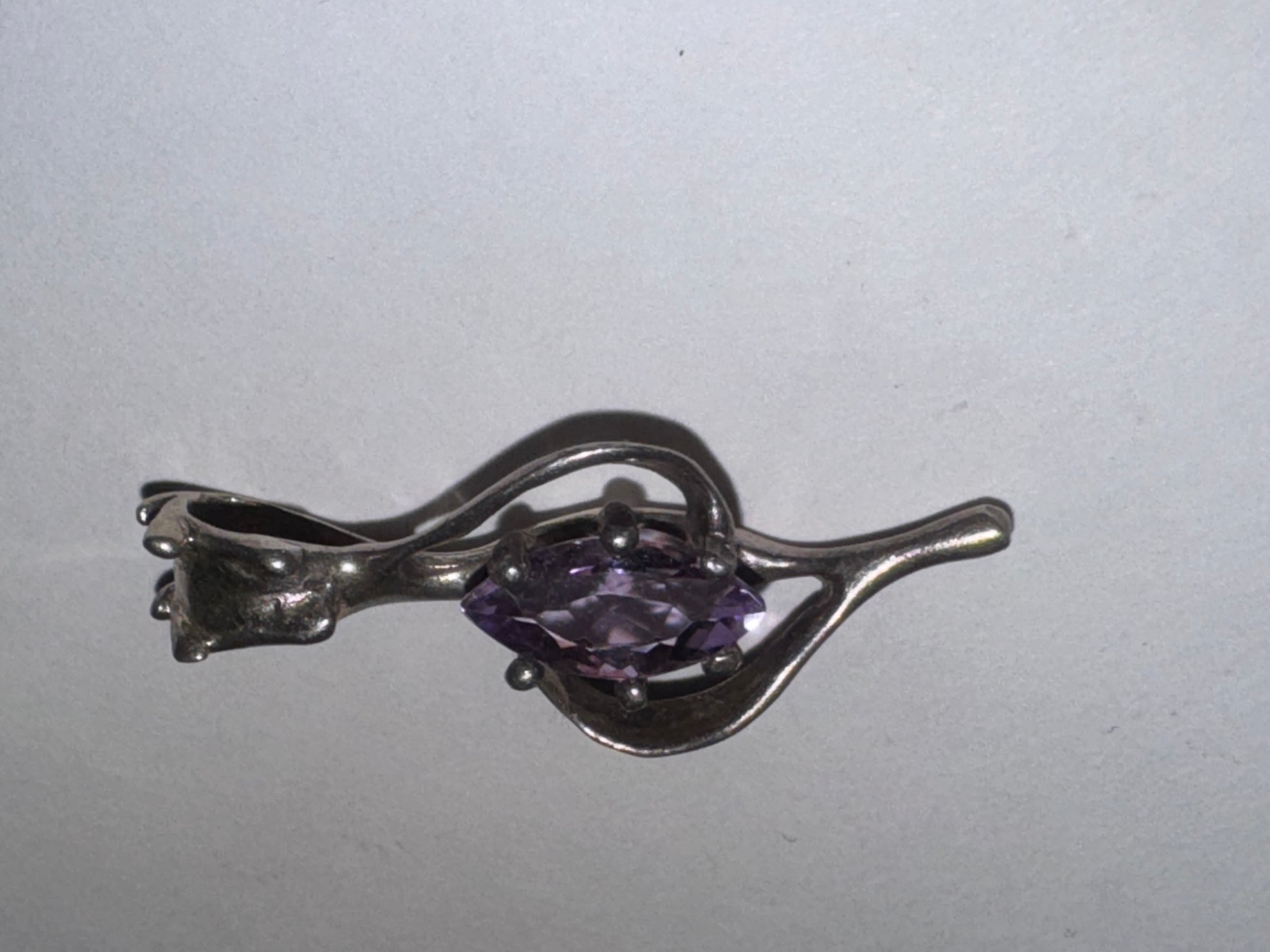 Solid sterling silver pendant with a real amethyst set in the center. Handmade.