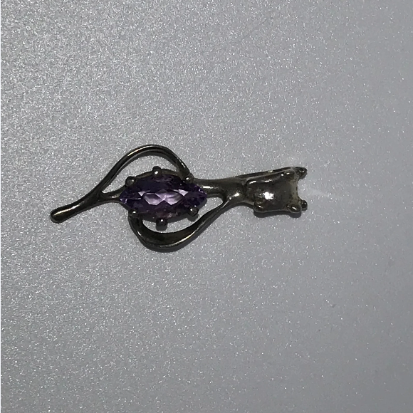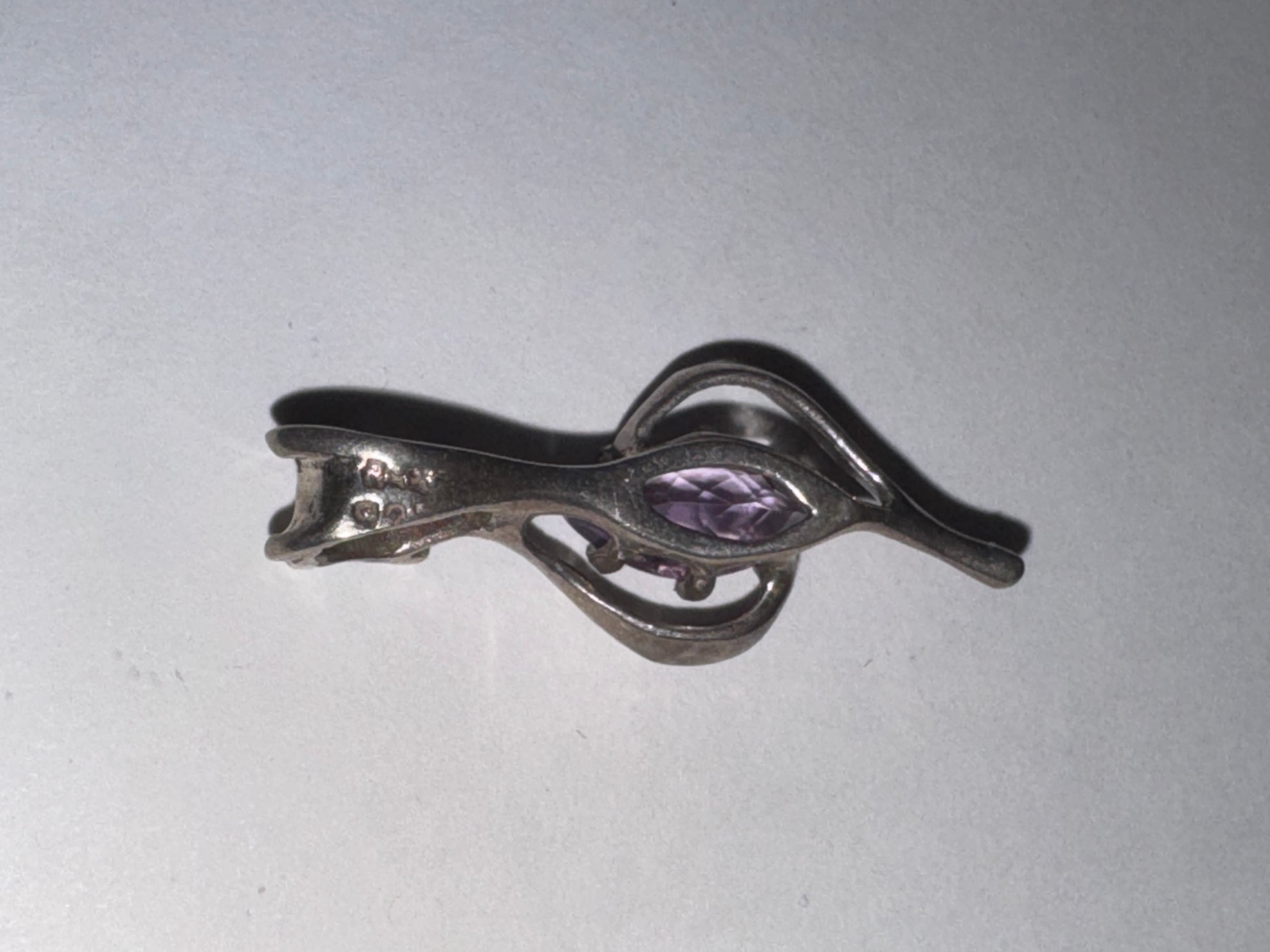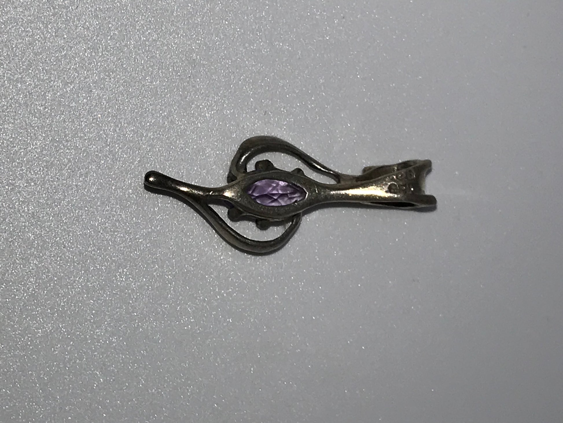 Solid sterling silver pendant with a real amethyst set in the center. Handmade.