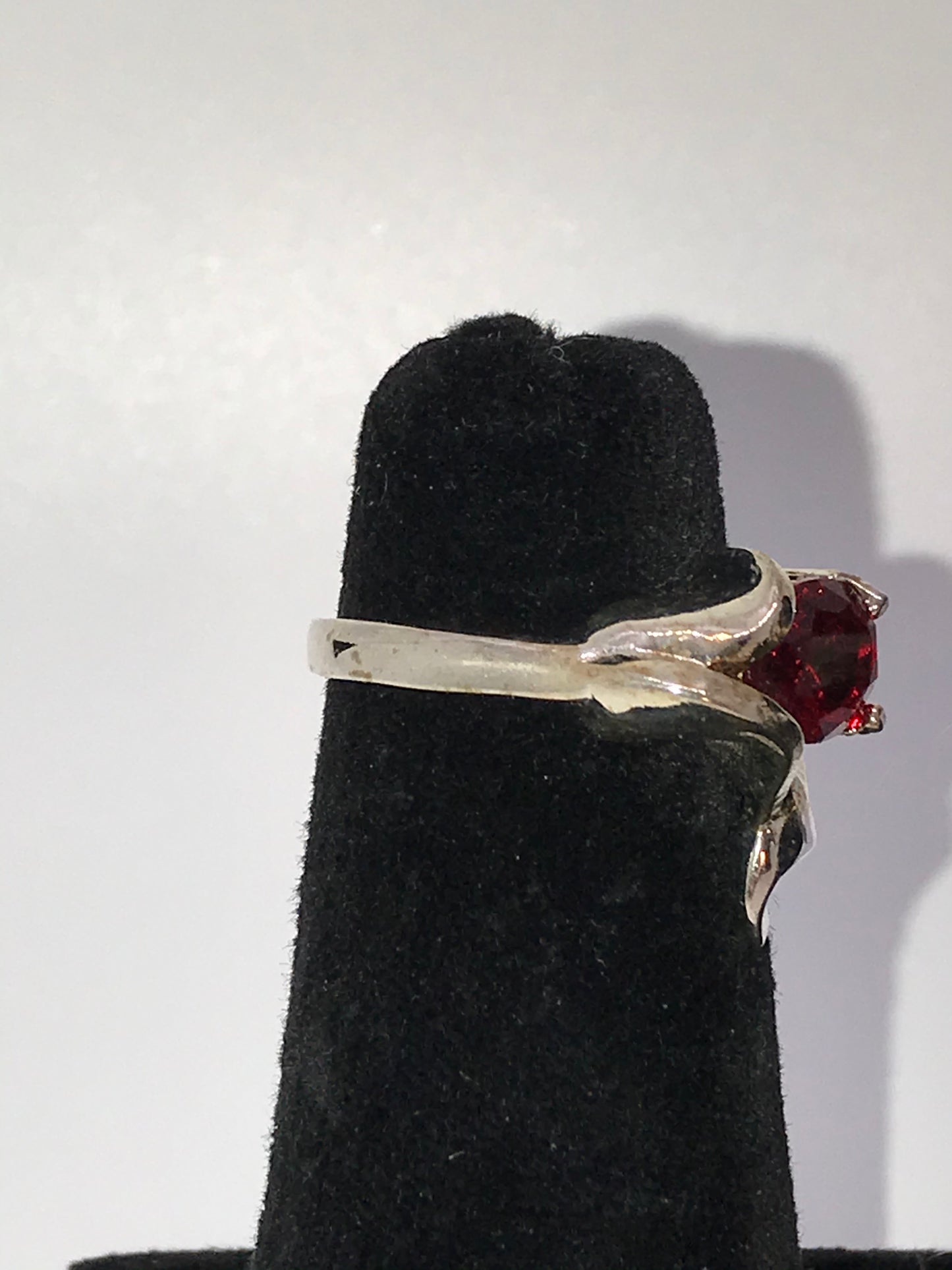 Sterling Silver Lily Ring With A Red Cz Size 8