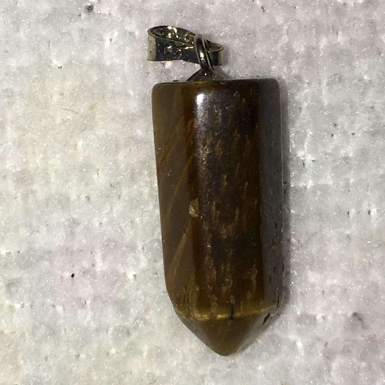Natural Tigers eye pendulum pendant. This pendant is top drilled with a silver tone bail. This is just about an inch long and 1/4" wide. #tigerseye #pendant #tigerseyependant